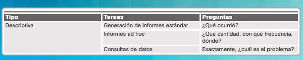 El análisis descriptivo depende únicamente de datos históricos para brindar informes regulares sobre eventos que ya se han producido. Este tipo de análisis también se usa para generar informes ad hoc que resumen grandes cantidades de datos para responder preguntas simples como “¿Cuánto…?”, “¿Cuántos…?” o “¿Qué sucedió?”. También puede utilizarse para examinar a fondo los datos y hacer preguntas más profundas acerca de un problema específico. El análisis descriptivo resume los datos en información más compacta e útil.