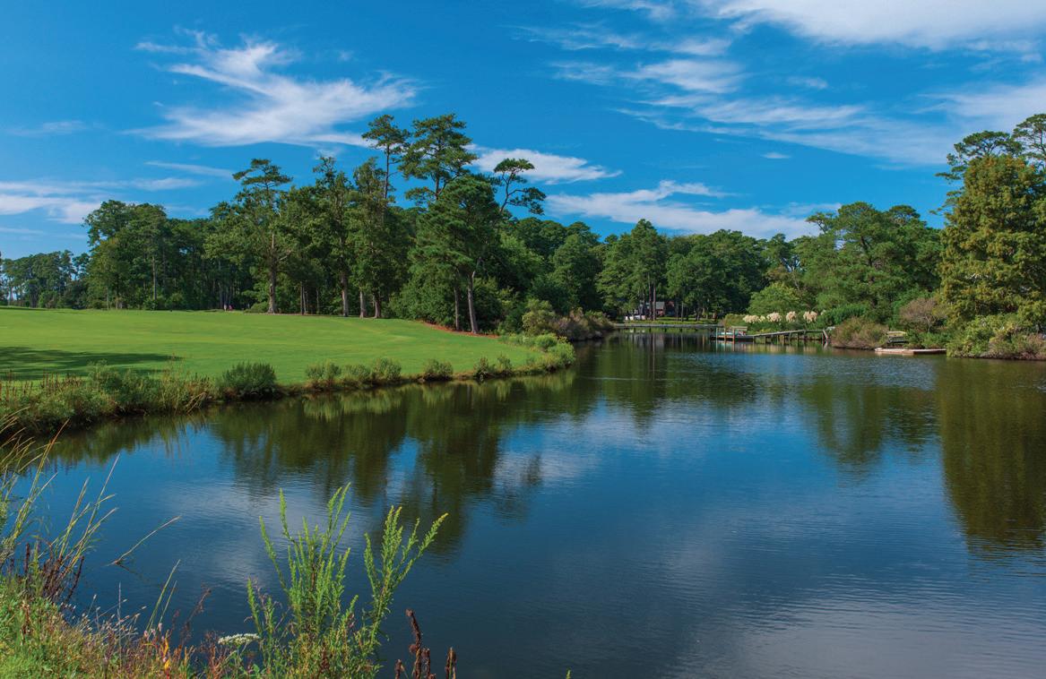 The club boasts a first-rate golf course that winds through stands of stately pines and live oaks and along narrow waterways. It also features an extensive tennis and pickleball facility with indoor and outdoor courts; a full-service fitness and wellness center; a fully-appointed clubhouse that includes spacious locker rooms, cozy bars, spaces for schoolaged members and a restaurant as good as any “at the Beach”; and a modern aquatics complex.
