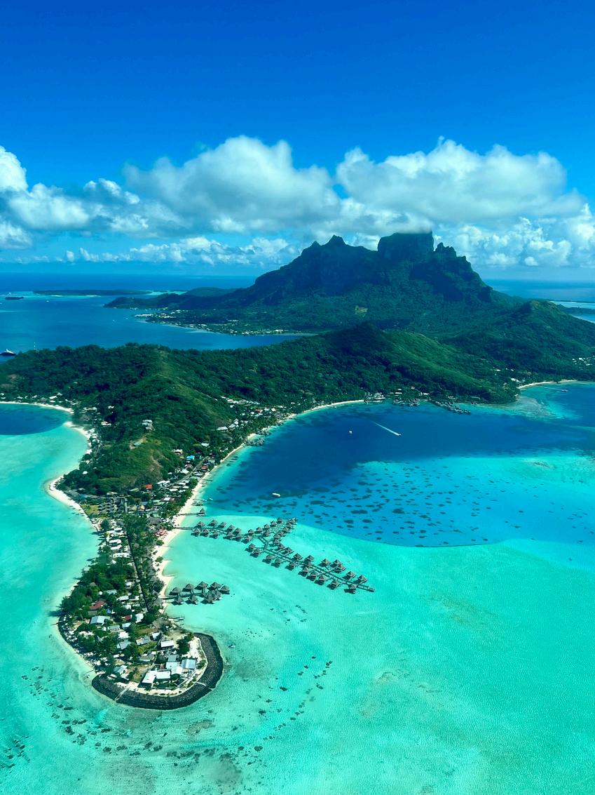 A menudo descrita como la isla más hermosa del mundo, Bora Bora es la joya de la corona de la Polinesia Francesa. Situada en las Islas de la Sociedad, a unos 160 kilómetros al noroeste de Tahití, este pequeño vestigio volcánico (de tan solo 31 kilómetros cuadrados) se caracteriza por el escarpado pico de roca negra del monte Otemanu, que se alza majestuosamente sobre una laguna de increíbles tonalidades turquesa.