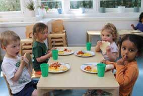 • Three-bin system in the dinner hall for food waste
