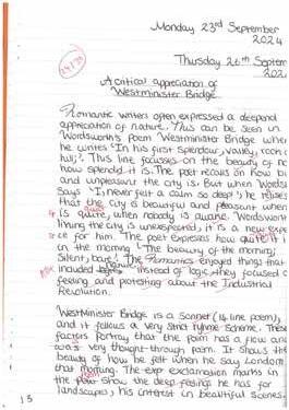 English Romanticism is studied by Year 8. Here is a selection of great responses, selected by Mrs Pascoe Williams on the works they have studied.