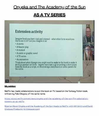 Here is Miriam Lambe’s (Y7), wonderful stage adaptation of ‘Cogheart’ by Peter Bunzel. Also Dami Ajagunna (Y9), completed a project turning ‘Onyeka and the Academy of the Sun’ by Tola Okogwu into a TV series, which was rewarded with a Full da Vinci Merit.