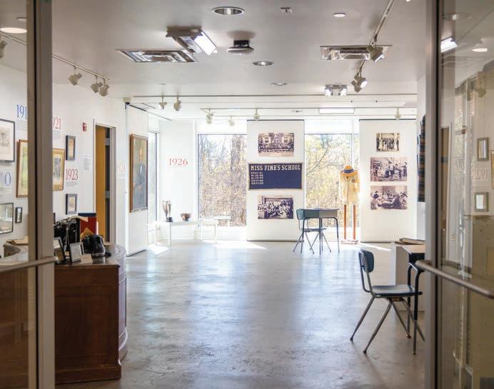 The Anne Reid ’72 Gallery came alive this spring with a special exhibition honoring Princeton Country Day School’s centennial and Miss Fine’s School’s quasquicentennial anniversaries. Curated by communications and advancement colleagues Ashley Stenger and Amy Gallo ’03 P’32 ’35, alongside gallery director Gwen Shockey ’06, “Roots of Excellence” featured artifacts that chronicled the evolution of the two institutions that merged to form Princeton Day School in 1965.