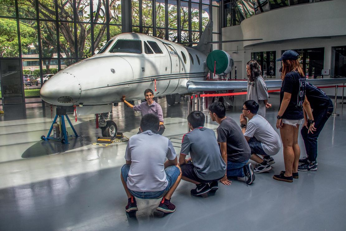 Josh Umansky-Castro '17 explaining aerospace design to Ngee Ann students.