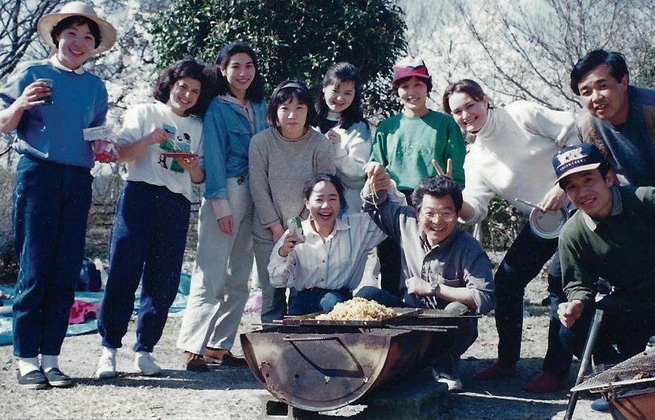 Beth (second from left) and Japan Fellow Sarah Meacham (first from right) celebrate the cherry blossom season in Yakage
