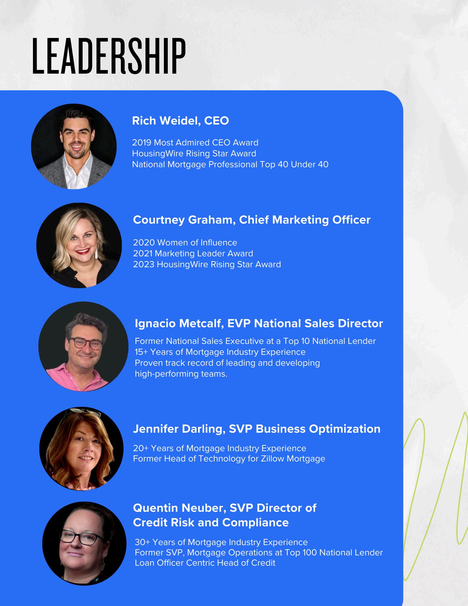 Exits wholesale channel to focus on distributed retail 2024 Ranked #1 NPS Score in all industries nationwide by Customer Gauge, grows retail production YOY #1 in Customer Satisfcation Founded on the second floor of a real estate office as an inhouse lender Founded in 1983