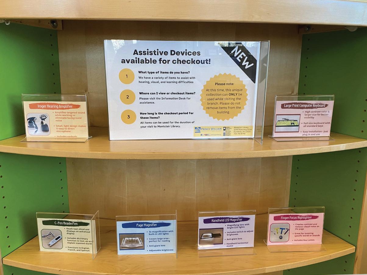 Patrons can check out the tools for in-house use at Montclair Library. These assistive devices help with low hearing, vision, and learning difficulties. The