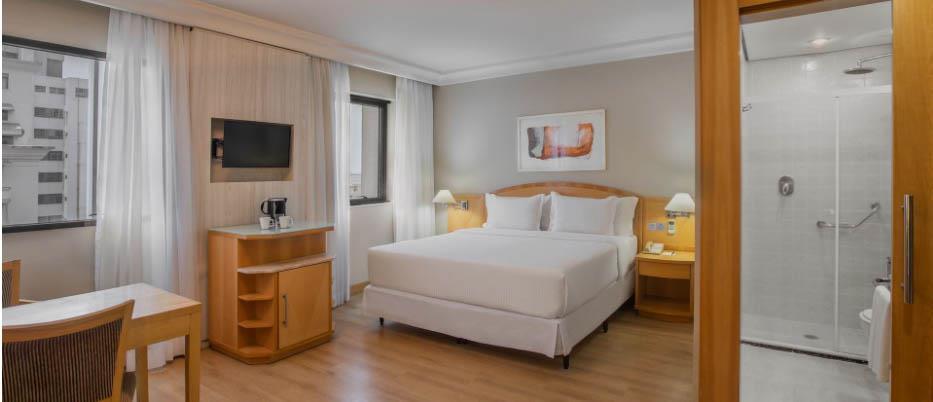 Moderno y actual, con nuevísimas instalaciones, habitaciones amplias y cómodas, espacios para eventos, restaurante, bar y todos los amenitites para la mejor estadía en São Paulo. Todas las 320 habitaciones cuentan con nuevo mobiliario, iluminación indirecta, mesa de trabajo, caja de seguridad y frigobar. Próximo a la estación Oscar Freire del metro.