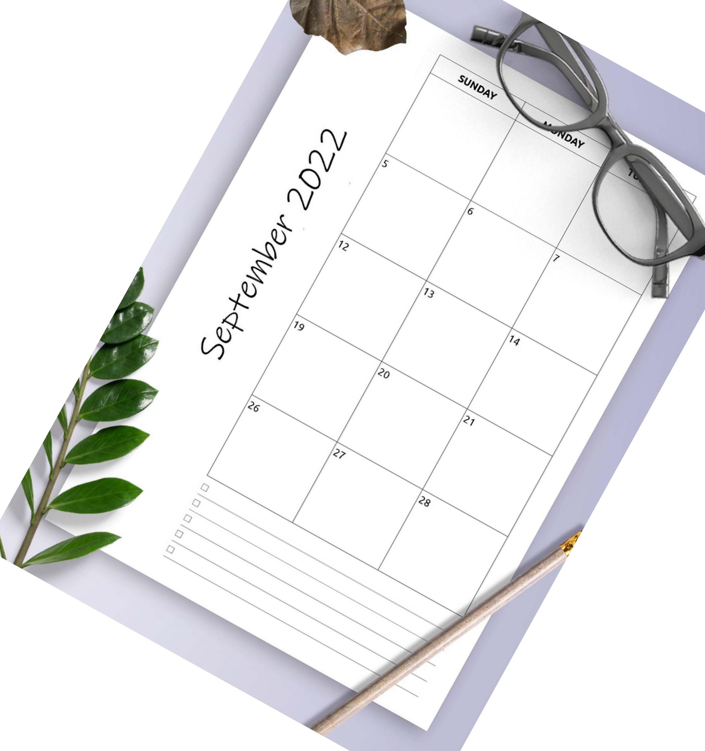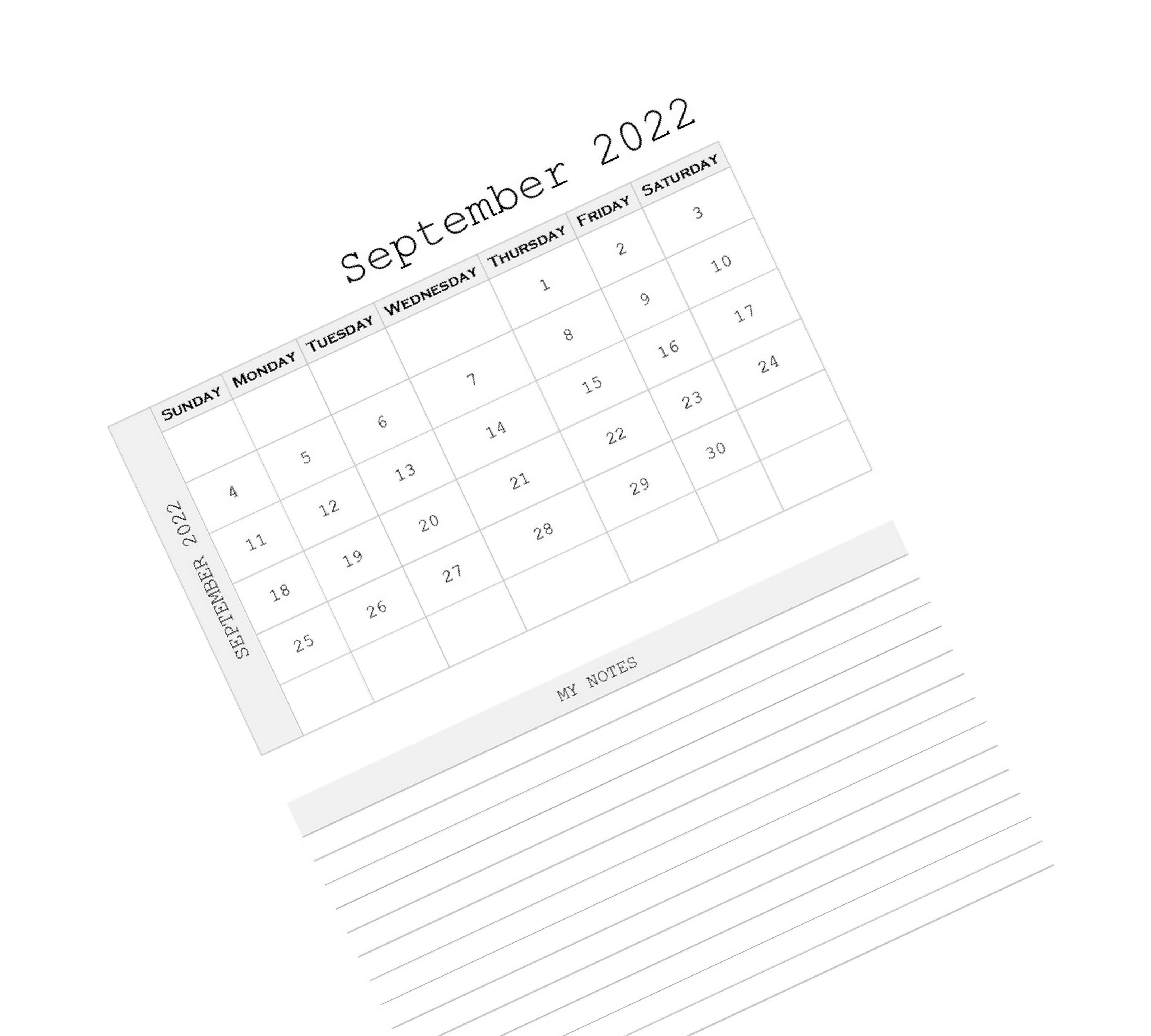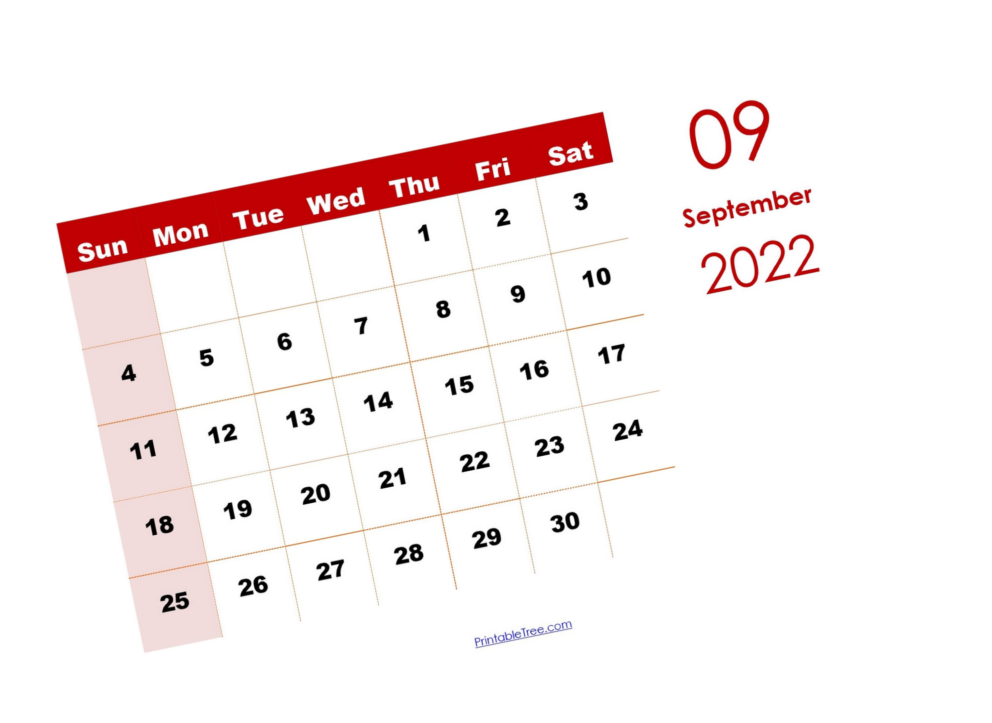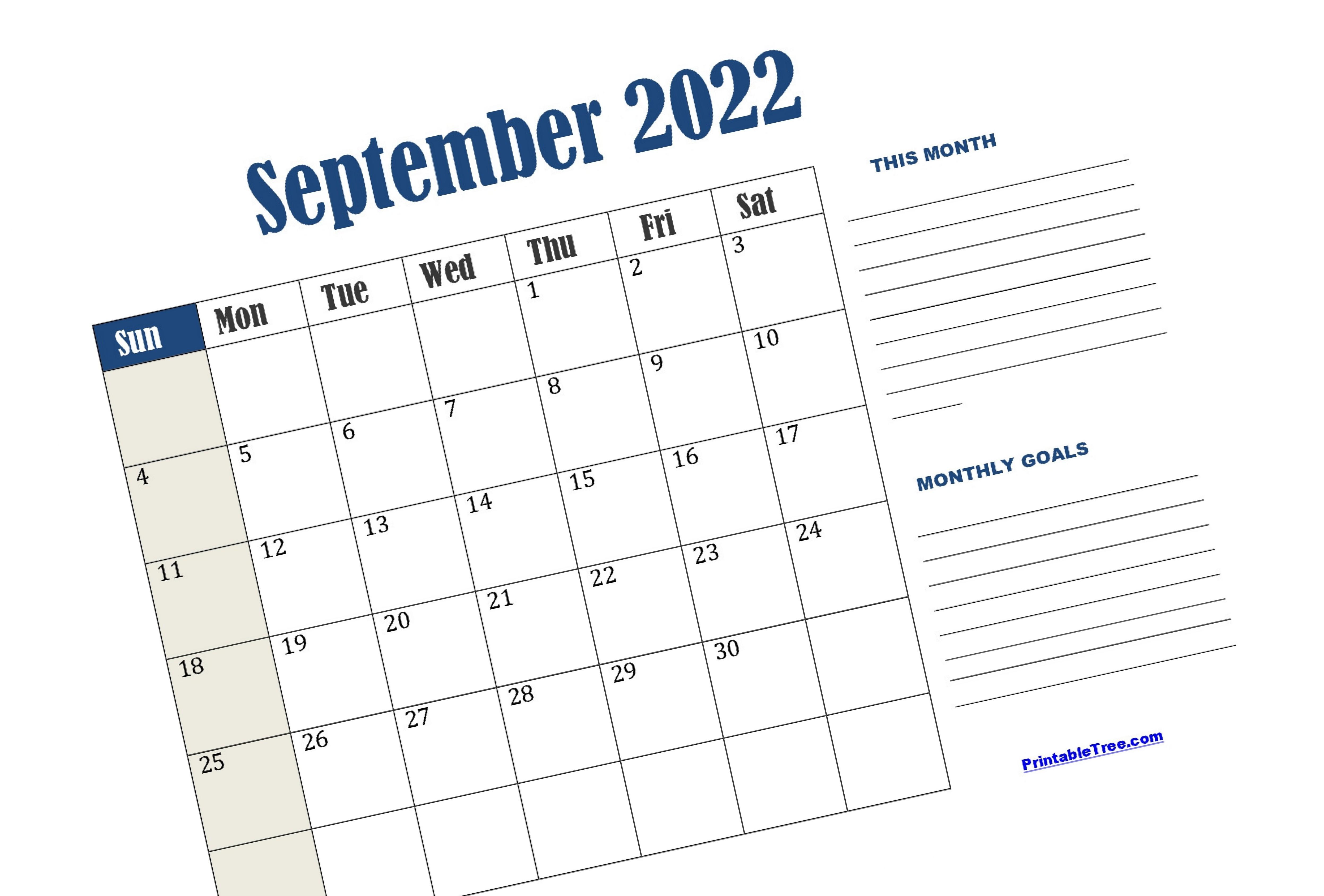 September 2022 Calendar Daily, Weekly, and Monthly Planner PrintableTree.com