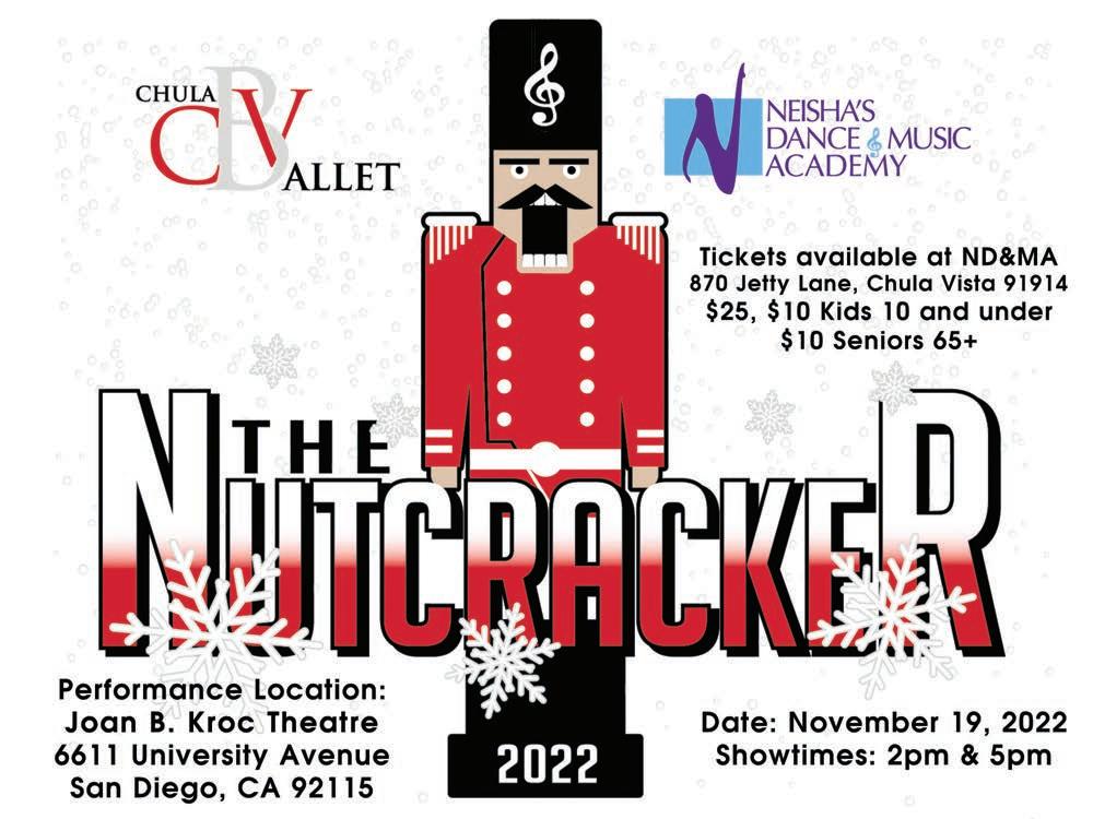 Chula Vista Ballet’s The Nutcracker will be presented Saturday, November 19th, 2022 at the Joan B. Kroc Theatre, 6611 University Avenue, San Diego, California 92115. Perfor