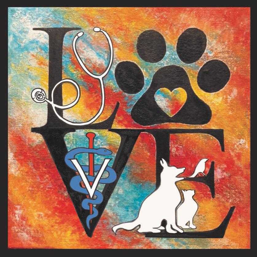 Award-winning local artist TONYA HOPSON & digital design assistant Matt Weimer (Barnyard Boards Coastal) created this piece exclusively for our Abbey Animal Hospital cover.