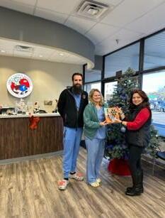 Here, Tonya Hopson presents Kathy & Justin of Abbey Animal Hospital autographed original art piece from our Nov 2022 issue.