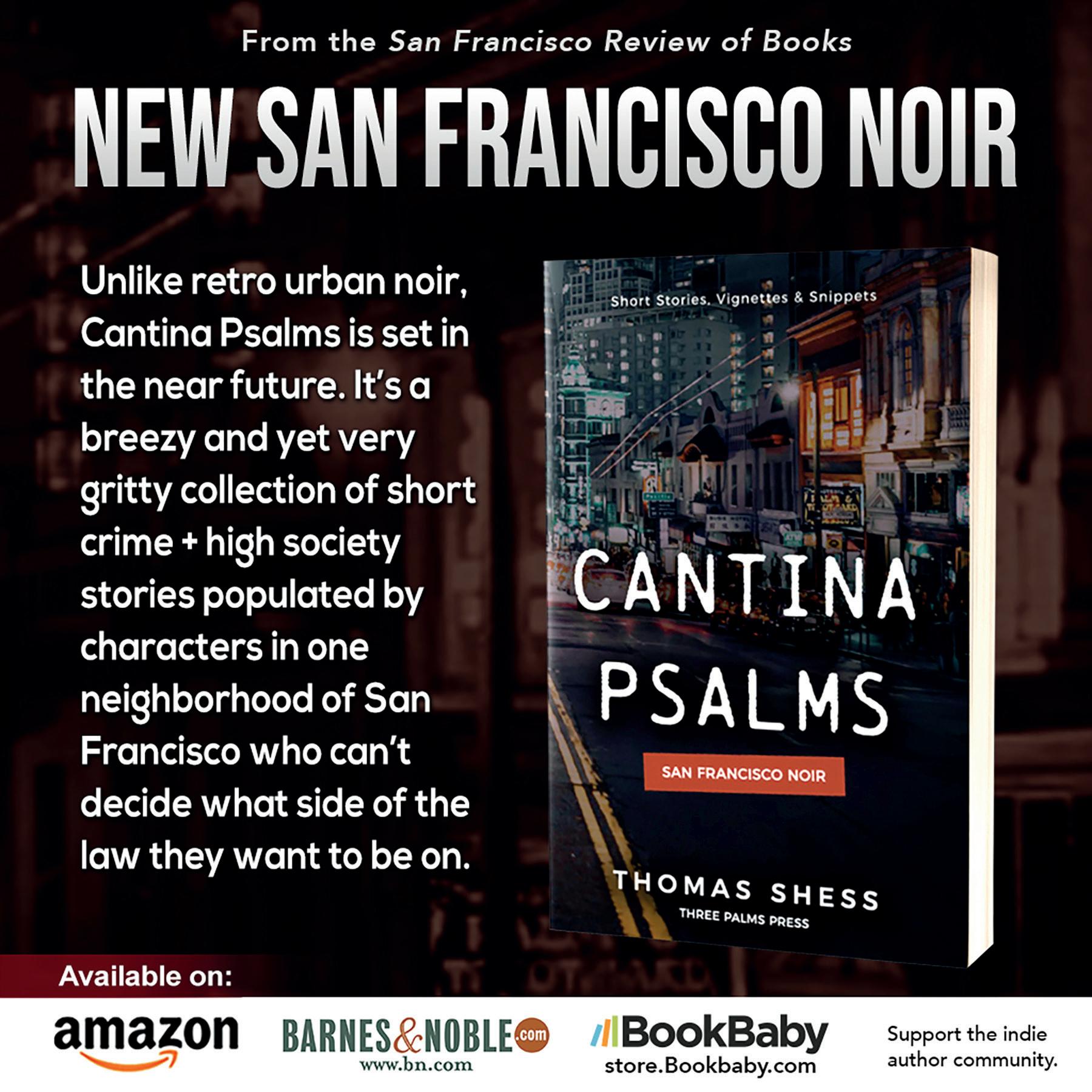 Tom Shess, who founded North Park News in 1993, has published his first novel, Cantina Psalms. Based on Shess’s early career as a San Francisco Examiner reporter and editor in chief of San Francisco Magazine, Cantina Psalms is uncut Bay Area noir with odd crime, characters and catastrophes. Watch falls from grace and the Golden Gate. Available online paperback or e-book at indie giant https://store.bookbaby.com and other major online sites and stores, including paperback at D.G. Wills Bookstore in La Jolla.