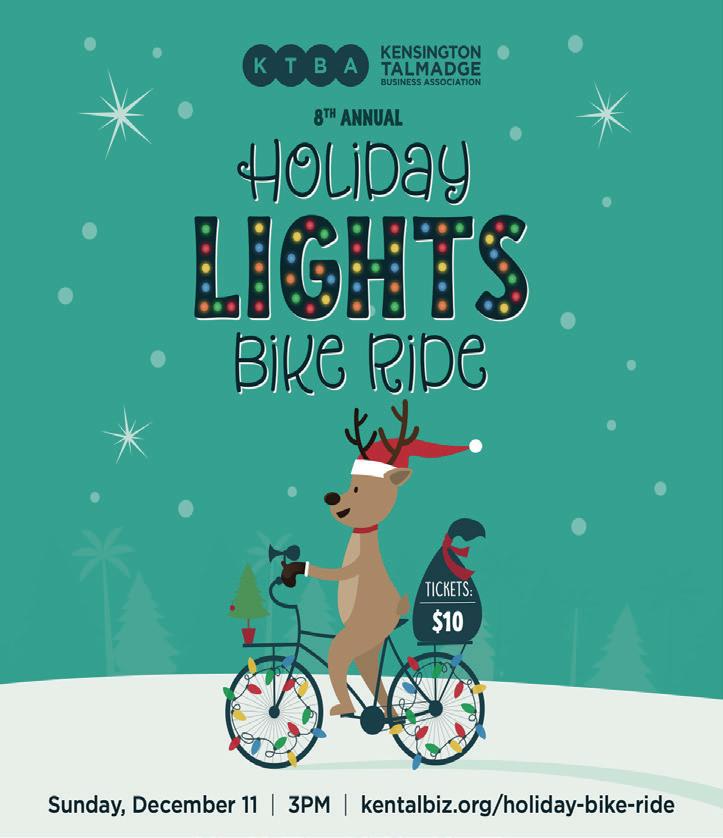 Join your neighbors for 1 of 2 family-friendly group rides (3miles & 1.75 miles) around Kensington to see the holiday lights! Tickets include bike decorations, a guided, safety-patrolled ride, free treats, and specials from participating businesses. Don't miss one of the best neighborhood events in San Diego! Purchase your tickets by Dec. 9th at KenTalBiz.org.