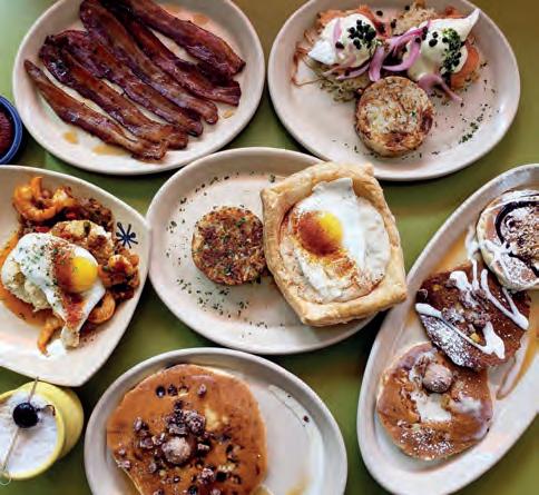 This ever-growing local chain chalks up its success on whimsical décor and a plethora of unique and hearty breakfast choices that include pistachio-infused baklava pancakes (a winter special), turkey meatloaf hash, linguisa sausage scrambles, mashed potato omelets, and the popular shrimp and grits served with three eggs. On the more traditional side of things, you’ll find exquisite eggs Benedict, chilaquiles, and an obliging selection of vegan dishes.