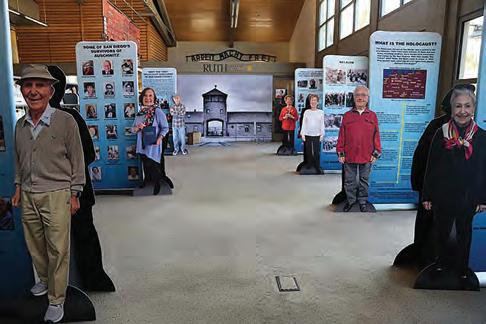 The late Gussie Zaks, from Poland, was described in the exhibition as “San Diego’s first lady of Holocaust survivors. As a Holocaust speaker and the President of the New Life Club... nothing stopped ‘Gutsy’ from facing antisemitism and teaching other Holocaust survivors to bond and not to be afraid to speak up.” In 1941 Nazis took her parents away from their home. At age 13, Gussie “was transported to several concentration camps, including Treblinka and Bergen-Belsen. Under brutal conditions she worked outdoors in the field with 1,000 other girls.” From later history, Gussie knew that the famed diarist, Anne Frank, was also at Bergen-Belsen in that time period, but they never met. “Everyone was too busy trying to survive to know who the others were.” After liberation, Gussie went to Sweden where she was nursed back to health. Years later, with husband Mike Zaks, she settled in San Diego. Some artifacts used by Holocaust lecturers are referenced in the exhibit. There is a photograph of the uniform that David Fox was issued at a concentration camp. His daughter Sonia Fox Ohlbaum takes it with her when she speaks to groups about the Holocaust. A dress worn by curator Scheller’s mother, with a big X on its back, is also exhibited. When