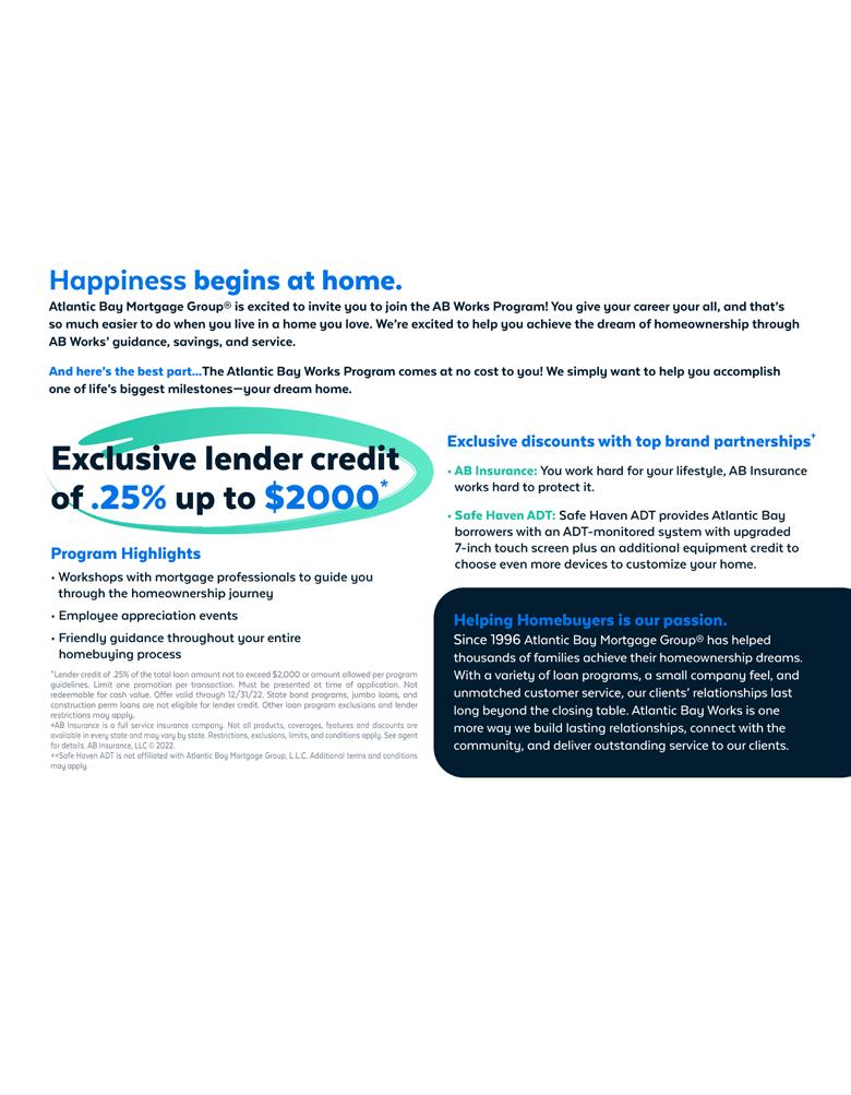 irginia CONNECTOR virginia beach edition V PET FIRST AID AWARENESS MONTH LOS SIETE for more information. Revised Aug 01, 2022 responsible for compensation of all benefits listed. Loan programs, interest rates, and and property appraisal. Not a commitment to lend. Atlantic Bay Mortgage Group, Lynnhaven Parkway Suite 100 Virginia Beach, VA 23452. COMPLIMENTS OF RANDY DEMILLE ALANTIC BAY MORTGAGE GROUP CASTLETON EXPERT