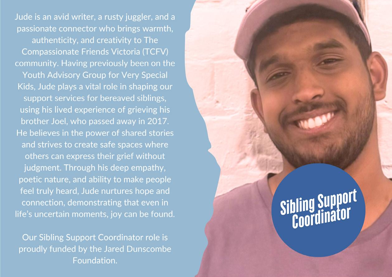 Alongside the development of these three new part-time positions, we are also excited to be able to expand again our service delivery to bereaved siblings. With a grant from the Jared Dunscombe Foundation, we are able to employ a new Siblings Coordinator, who will work closely with all our other new staff in the delivery of our key services. Some great applicants have been interviewed and an appointment is imminent. The process of employment in the other three new appointments is also well underway. Andrew McNess is stepping into a more senior coordination role within the organisation, overseeing these new positions in conjunction with his key role in group support, supervision and training.