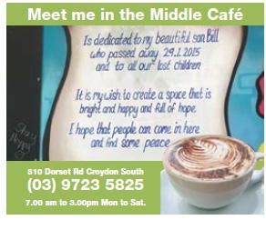 HeavenSentElectrical To learn more please contact the Foundation’s Team 03 9633 0033 philanthropy@lmcf.org.au Rikki Catriona Lonia Lord Mayor’s Charitable Foundation, Australia’s largest independent community foundation, helps you create an ongoing legacy in tribute to your treasured family member. A Memorial Charitable Fund Account will support causes and issues important to you and your family in perpetuity. Remembering your loved one forever with a Memorial Charitable Fund Account. lmcf.org.au COMMUNITY NOTICE BOARD