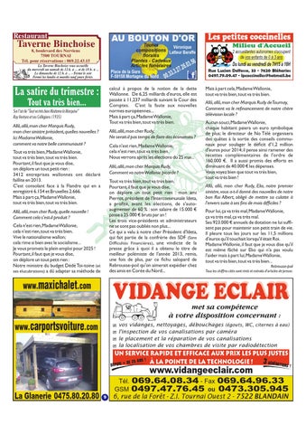 Allô,allô,mon cher Marquis Rudy, Comment va notreWallonie picarde ? Tout va très bien,tout va très bien. Pourtant,il faut que je vous dise, on déplore un tout petit rien : mon ami Pierrot, président de l'Intercommunale Ideta, a profité, avant les élections, de s'autoaugmenter de 60 % : son salaire de 15.000 € passe à 25.000 € bruts par an ! Les trois vice-présidents et administrateurs ne se sont pas oubliés non plus... Ce qui a valu à notre cher Président d'Ideta, qui fait partie de la confrérie des SDF (Sans Difficultés Financières), une vindicte de la presse grâce à quoi il a obtenu le titre de meilleur polémiste de l'année 2013, remis, une fois de plus, par ce fichu salopard de Rebrousse-poil qu'on aimerait expédier chez des amis en Corée du Nord...