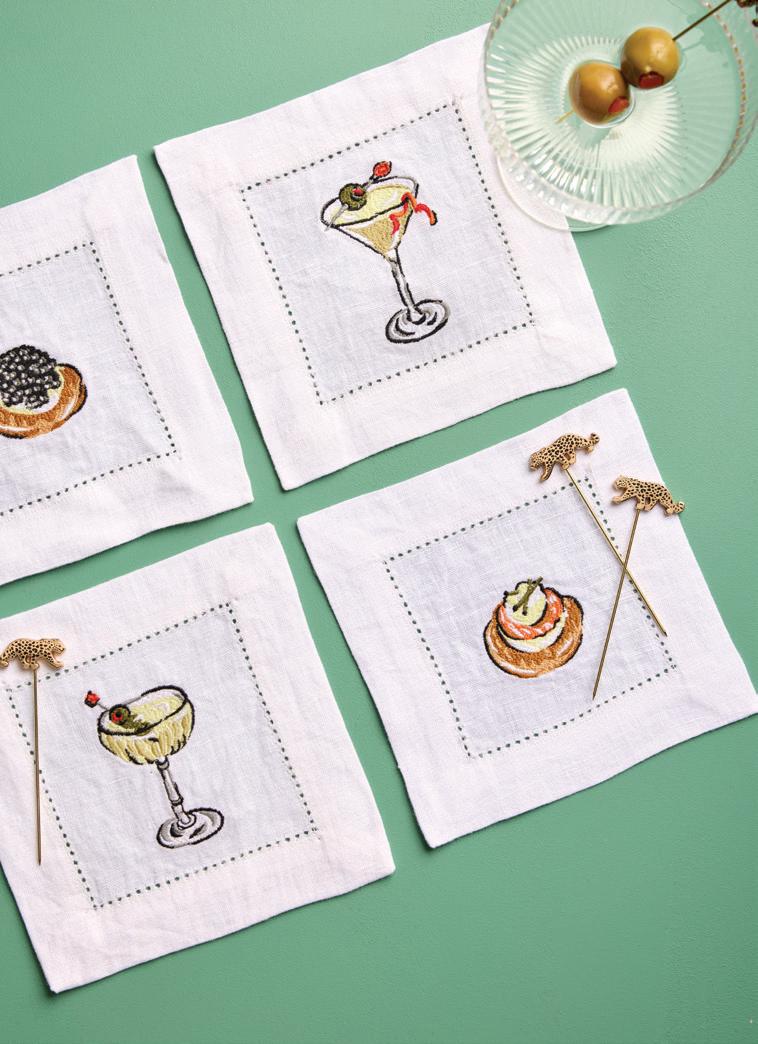 Blinis & Martinis Cocktail Napkins Set of 4 | $48, Leopard Cocktail Picks | $32