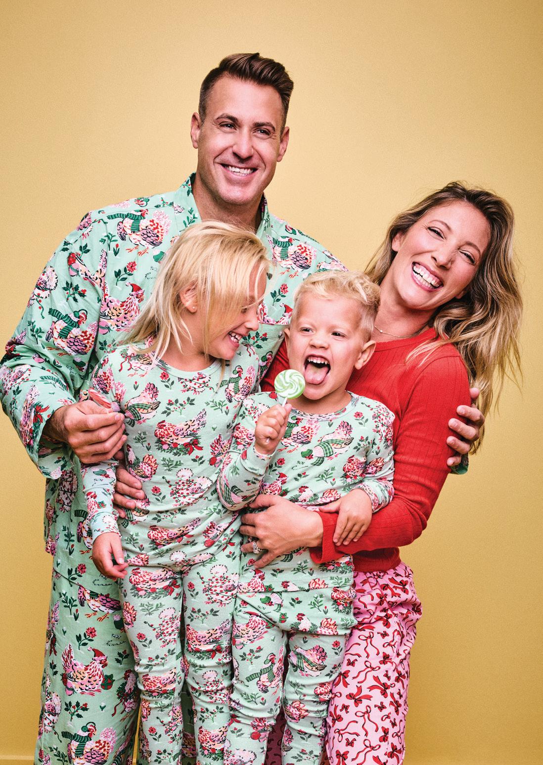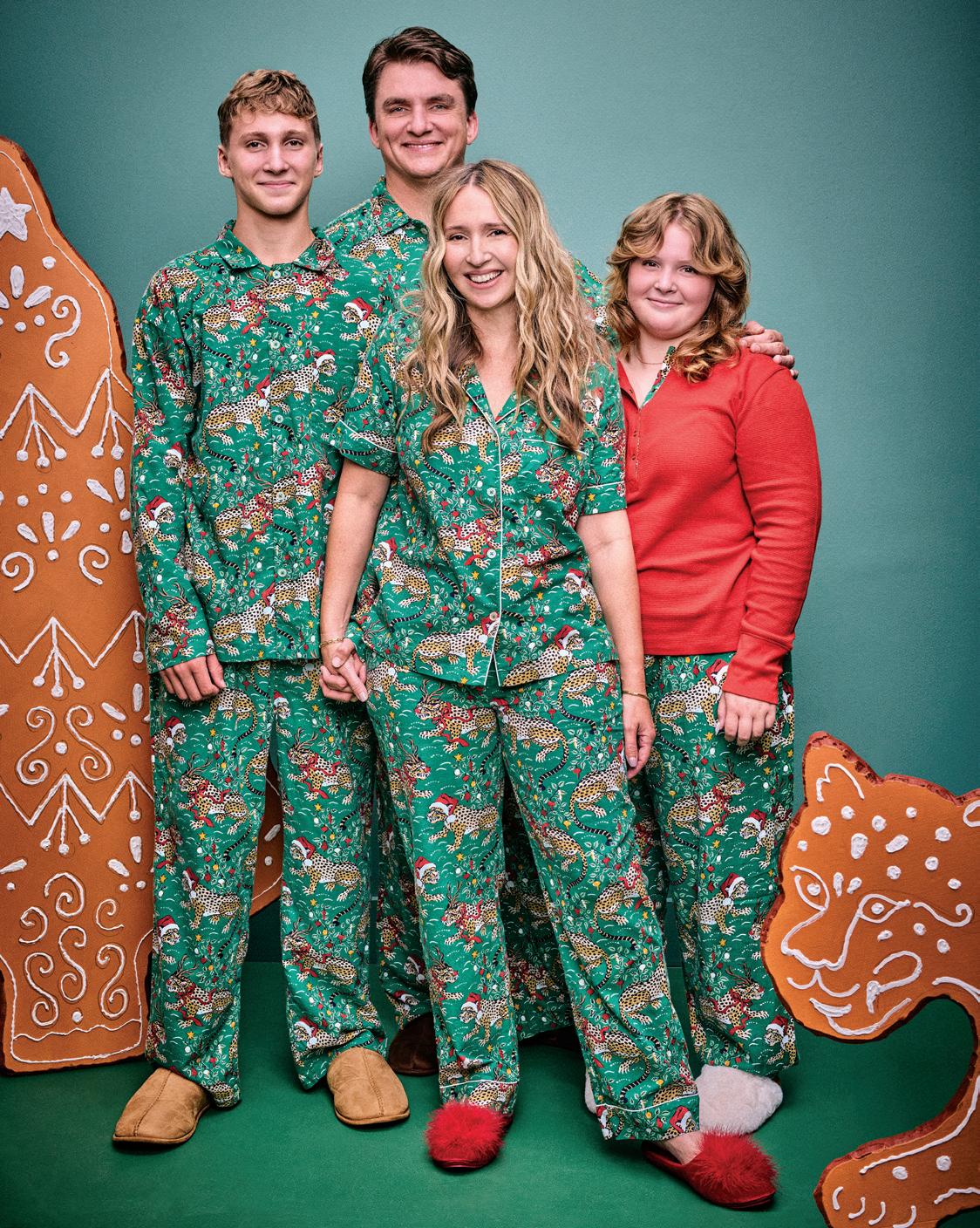 Photographed with Co-Founder husband Leo and kids Nico and Mila wearing matching Very Merry Bagheera Flannel PJs.