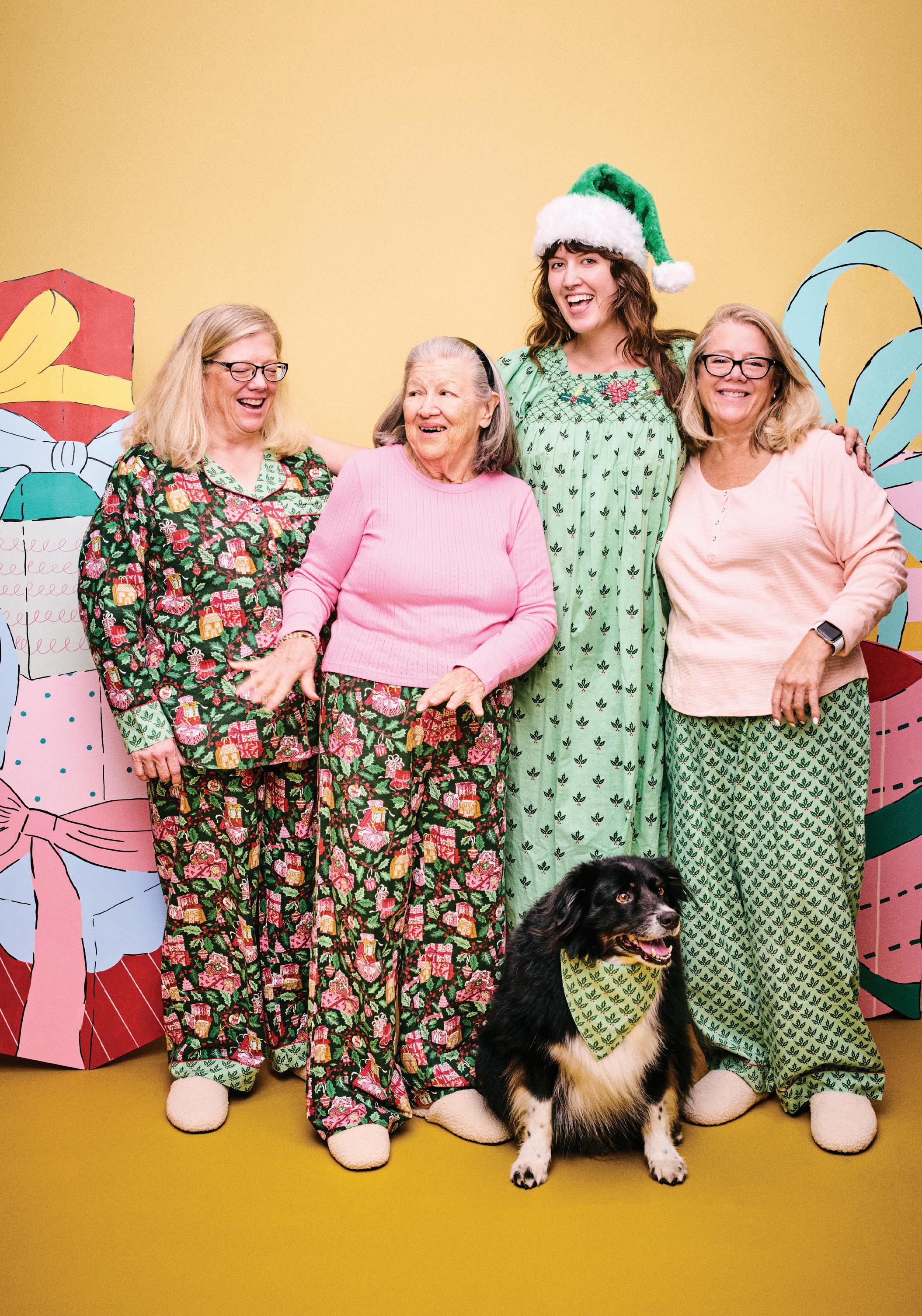 Philly artist Eliza joins her Granny, aunts, and pup Finn in perfectly coordinated PJs to bring festive cheer to Christmas morning. The real celebration starts the night before, when the whole family gathers in Iowa for a big holiday meal.