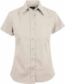 Sandbrun kortermet Oxford-vevet dameskjorte med buttondownkrage og brystlomme. 70% bomull / 30% polyester.