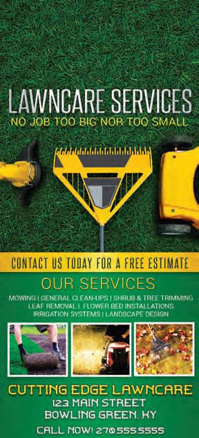 Rack Cards are printed in full color on heavy stock and designed for display in an industry standard 4” wide rack and stand 9” tall.