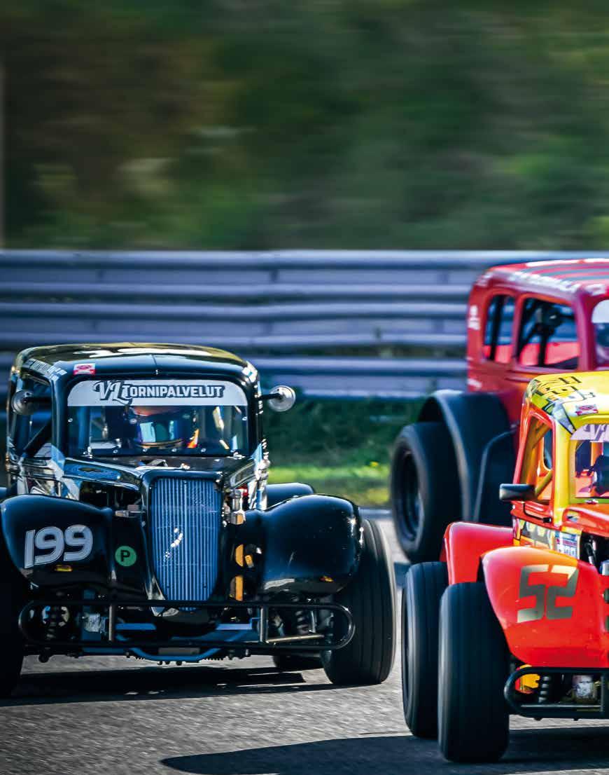 . Legendsit – koostaan huolimatta Suomen suurimmat. Legends-autojen tarina alkoi Yhdysvalloissa 90-luvun alkupuolella. Usean eri autourheiluluokan osallistujamäärät alkoivat vajota huolestuttavasti maan taloudellisen taantuman vuoksi, joten oli keksittävä edullisempi tapa harrastaa.
