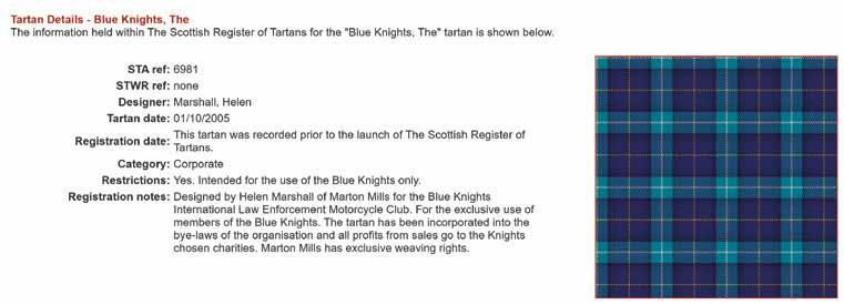 Tartan Details - The Scottish Register of Tartans; https://www.tartanregister.gov. uk/tartanDetails?ref=303