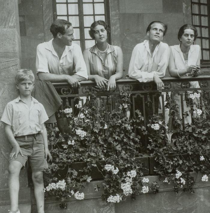 Abbildung 10 zeigt die enge Verbindung der Hessen und der Battenbergs. Im Fenster die stolze Besitzerin Elisabeth, links ihre Cousine, Louise von Battenberg, die als zweite Frau von König Gustav VI. Adolf 1950 Königin von Schweden wur de. Auf der Bank vor Louise: ihr jüngster Bruder, Louis (genannt Dickie), nachmals Earl Mountbatten of Burma, First Sealord der Royal Navy und letzter britischer Vizekönig von Indien. Rechts sein älterer