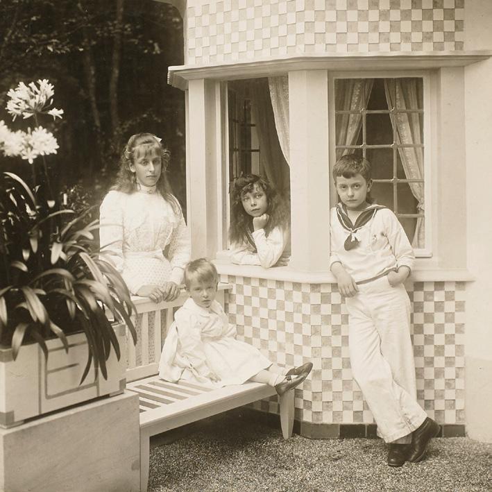Großherzog Ludwig IV. (1837 1892) war der Lieb lingsschwiegersohn von Königin Victoria, mit deren Tochter Alice er eine glückliche Ehe führte. An Alices Engagement für das Gemeinwohl erinnern heute noch das Darmstädter AliceHospital und die Alice Schwesternschaft vom Ro ten Kreuz. Nach ihrem frühen Tod verlegte Ludwig seinen Sommerwohnsitz mit den vier Kindern nach Wolfsgarten. Der traditionelle Aufenthalt in Kranichstein erinnerte sie zu sehr an die glückliche Zeit mit ihrer Mutter. Königin Victoria nahm sich der hessischen Enkelkinder besonders liebevoll an. Die Ferien verbrachten sie regelmäßig bei ‚Grandmama‘ in Windsor oder Balmoral.