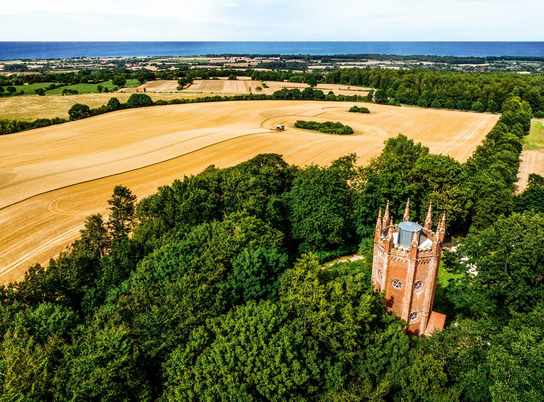 Im nordwestlichen Park wurde neben den Tennis plätzen ein strohgedecktes Teehaus gebaut. Eine nicht geplante Kuriosität: Um eine Eiche nicht dem Bau zu opfern, entschied der Bauherr, im überstehenden Dach an der Südseite ein Loch zu lassen, sodass der Stamm durch das Dach ge wachsen zu sein schien.