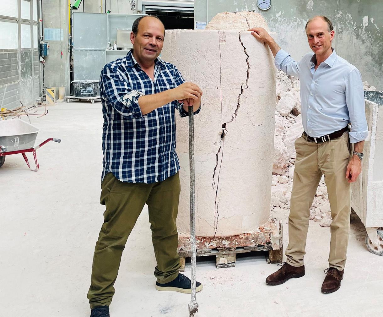 sandstein der übrigen Gebäude erhielt nach einer alten Vorlage (siehe Titelbild dieser Ausgabe) und in Abstimmung mit dem Landesdenkmalamt einen ockerfarbenen Sandputz.