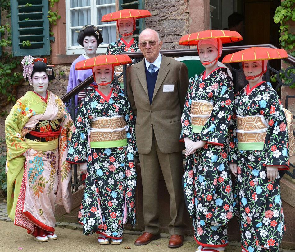 Abb. 20: Landgraf Moritz mit Japanerinnen beim Gartenfest 2011, das mit dem Thema „Japan zu Gast" der japanischen Gartenkultur gewidmet war (HH)