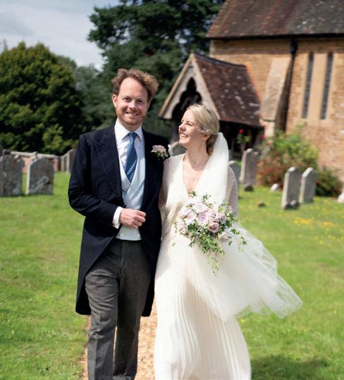 Edward Towers and I got married at St Peter’s Church in Hascombe on 12th August 2023, with the reception at my family home in Chiddingfold. Prior’s Field girls Aurora Desbonnets née Dupuis and Angela Ardron née Kenny helped us celebrate.