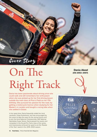 Award winning Old Girl Dania Akeel pursues her passion for motor racing Page 12–13
