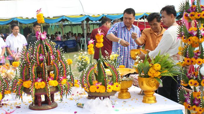 รวงข้�ว, ประเพณีชักพระ,ขนมทองม้วน, ขนมหลังเต่�, ล�ยผ้�ไหม ม�จัดเรียงประกอบเป็นลวดล�ยเพื่อง�นพิมพ์