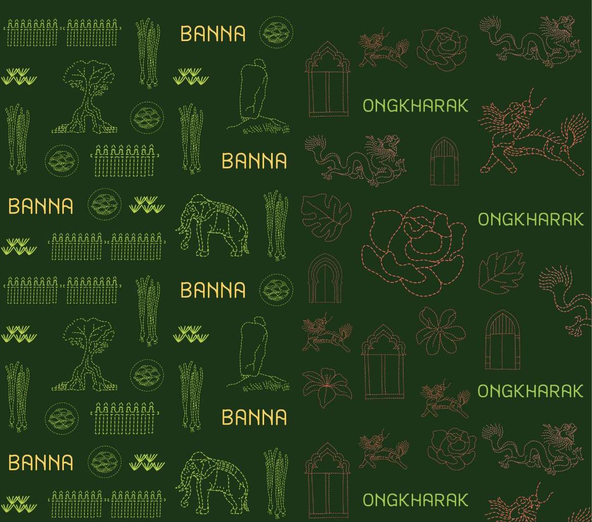 การออกเเบบลายพ�้น ลายเเมบท ตักบาตรทองน้ำ เสมาธรรมจักร หอภาพยนตร พ�ทธมณฑล แรงบันดาลใจในการออกแบบแมลายอําเภอพ�ทธมณฑลมาจากลักษณะของจ�ตรกรรมฝาผนัง ที่บอกเร�่องราวผานอัตลักษณทางวัฒนธรรม ไดเเก เสมาธรรมจักร, พ�ทธมณฑล, ตักบาตรทองนํ้า, หอภาพยนตร มาจัดเร�ยงประกอบเปนลวดลายเพ�่องานพ�มพ นครปฐม 316