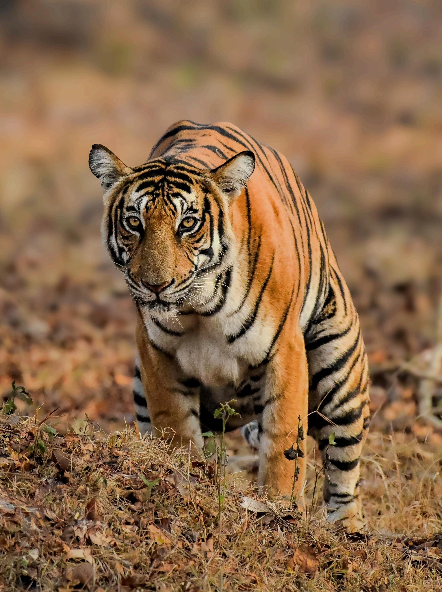 Just past dawn, the sky awash with soft hues of orange and pink, our open jeep rumbled gently along the forest trail of Nagarahole National Park The jungle stirred awake birds chirped, a distant langur grunted, and leaves rustled gently in the cool morning breeze On either side, dense walls of teak and rosewood trees towered, forming a grand green cathedral. Golden sunlight filtered through the canopy, casting long shadows on the forest floor. Our guide, a quiet man with hawk-like eyes, suddenly raised his hand The jeep stopped The forest fell into an expectant hush “There,” he whispered, pointing ahead Then, we saw her Standing in a sun-dappled clearing, partially veiled by trees, was a Bengal tiger. A stunning female her orange coat marked with black stripes, muscles moving with effortless grace. The morning light streamed through the trees, illuminating one side of her body in radiant gold, as if the forest had chosen to spotlight her She paused She didn’t turn, didn’t startle, just regarded us with calm curiosity No fear No threat Just presence. Her breath curled slightly in the crisp air. Not a single alarm call came from the langurs or spotted deer. She was entirely at ease. Time seemed to freeze. The forest hummed softly; a camera clicked once. We barely moved It wasn’t just a sighting it was a rare moment of connection Then, with a final glance, she turned, drank from a nearby stream, scented the trees, and slipped into the forest’s embrace. We sat in silence, hearts racing. That morning, the wild had offered us a gift a glimpse of royalty bathed in dawn’s golden glow.