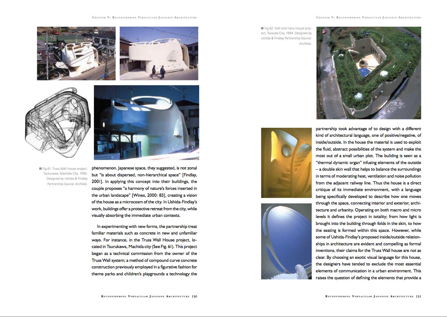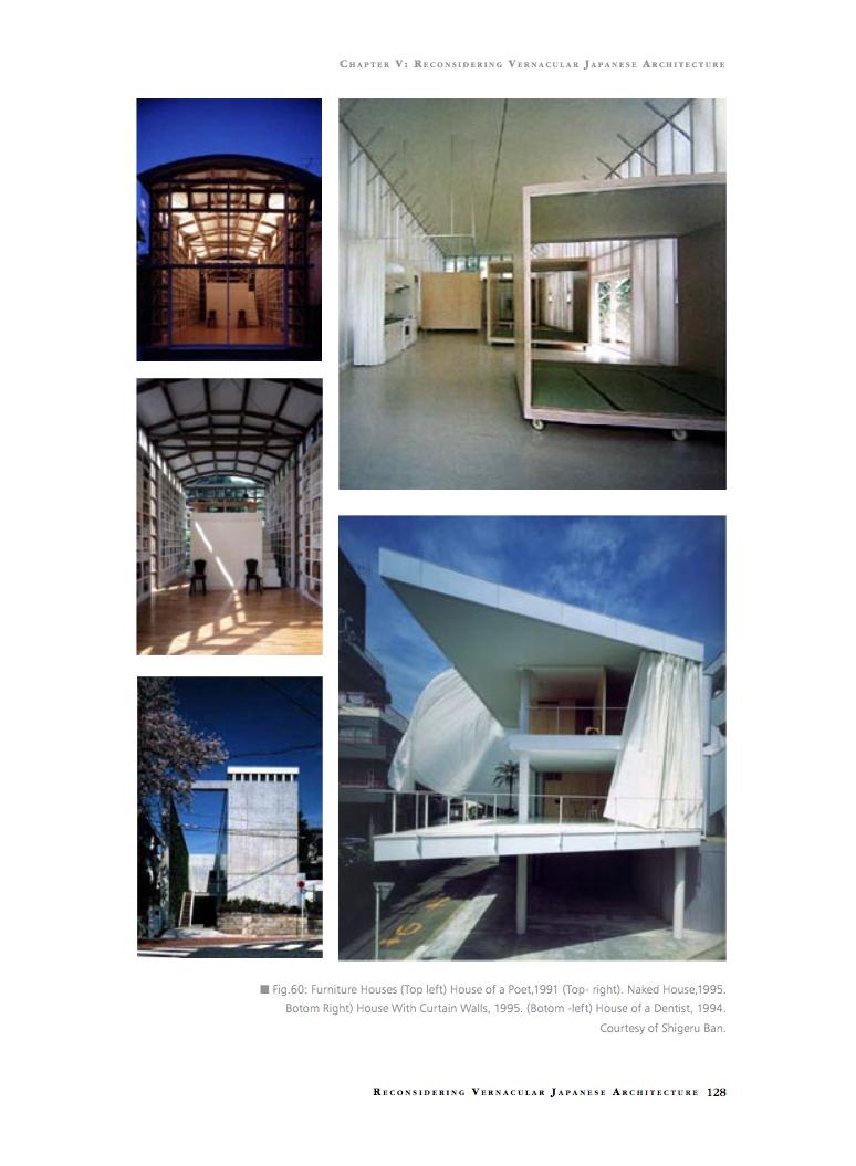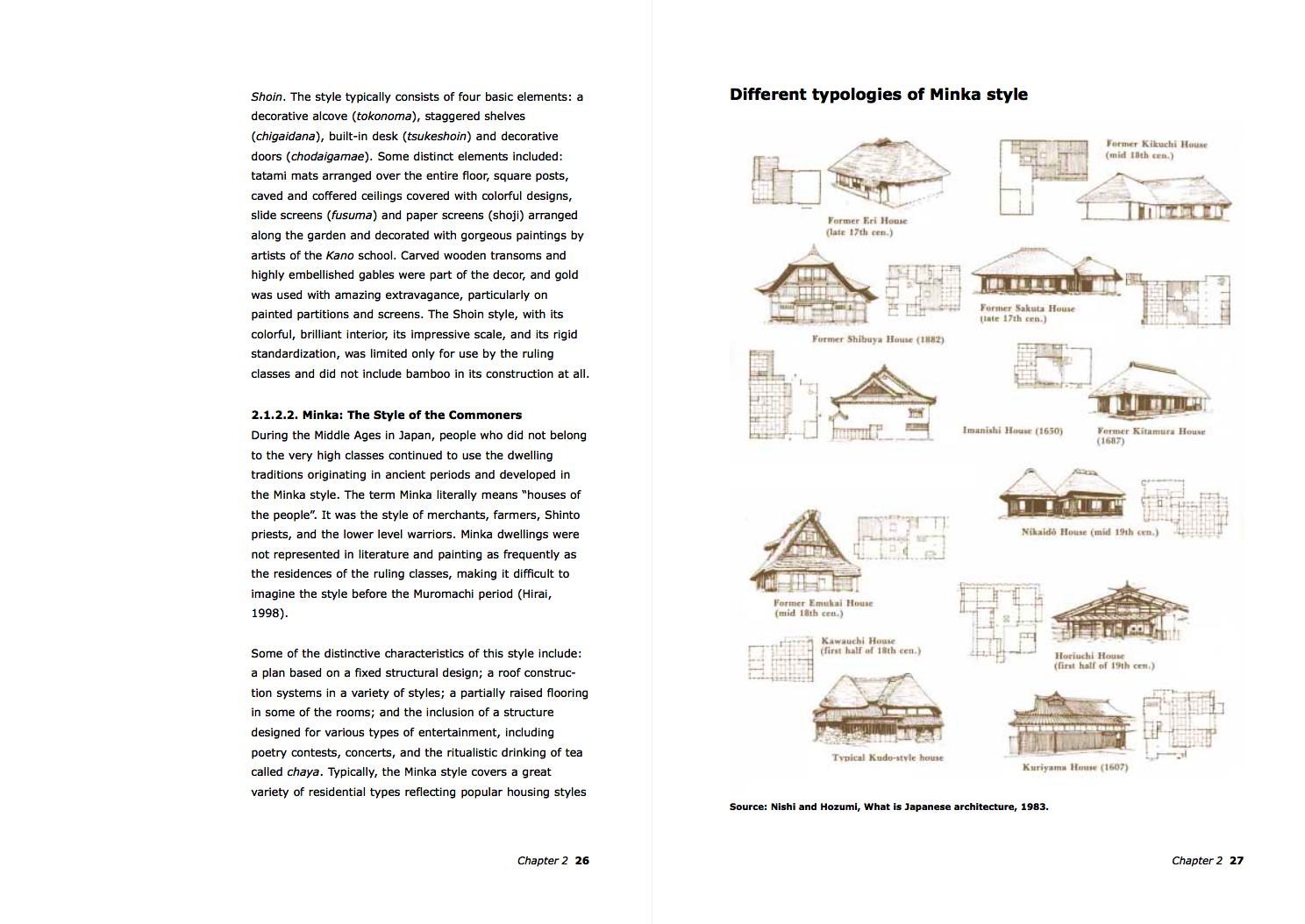 Na minha tese intitulada “Reconsidering Vernacular Japanese Architecture for Sus tainable Ecological Design”, buscava fazer uma conexão entre arquitetura e design partir da análise da arquitetura japonesa, que teve uma influência significativa na definição dos fundamentos do movimento moderno que por muito tempo foram di fundidos como um mantra nas salas de aula dos cursos de design e arquitetura ao redor do mundo. Porém, na minha pesqui sa, eu buscava discutir a arquitetura e, até certo ponto, o design, sob um ponto de vista diferente; a perspectiva do design para a sustentabilidade. A minha hipótese era que, tanto na sua essência física, na sua estética e na sua lógica construtiva subja cente, a arquitetura vernacular possuía uma série de princípios e ensinamentos que poderiam ser “abduzidos” na formula ção de diretrizes para o design de moradias sustentáveis.