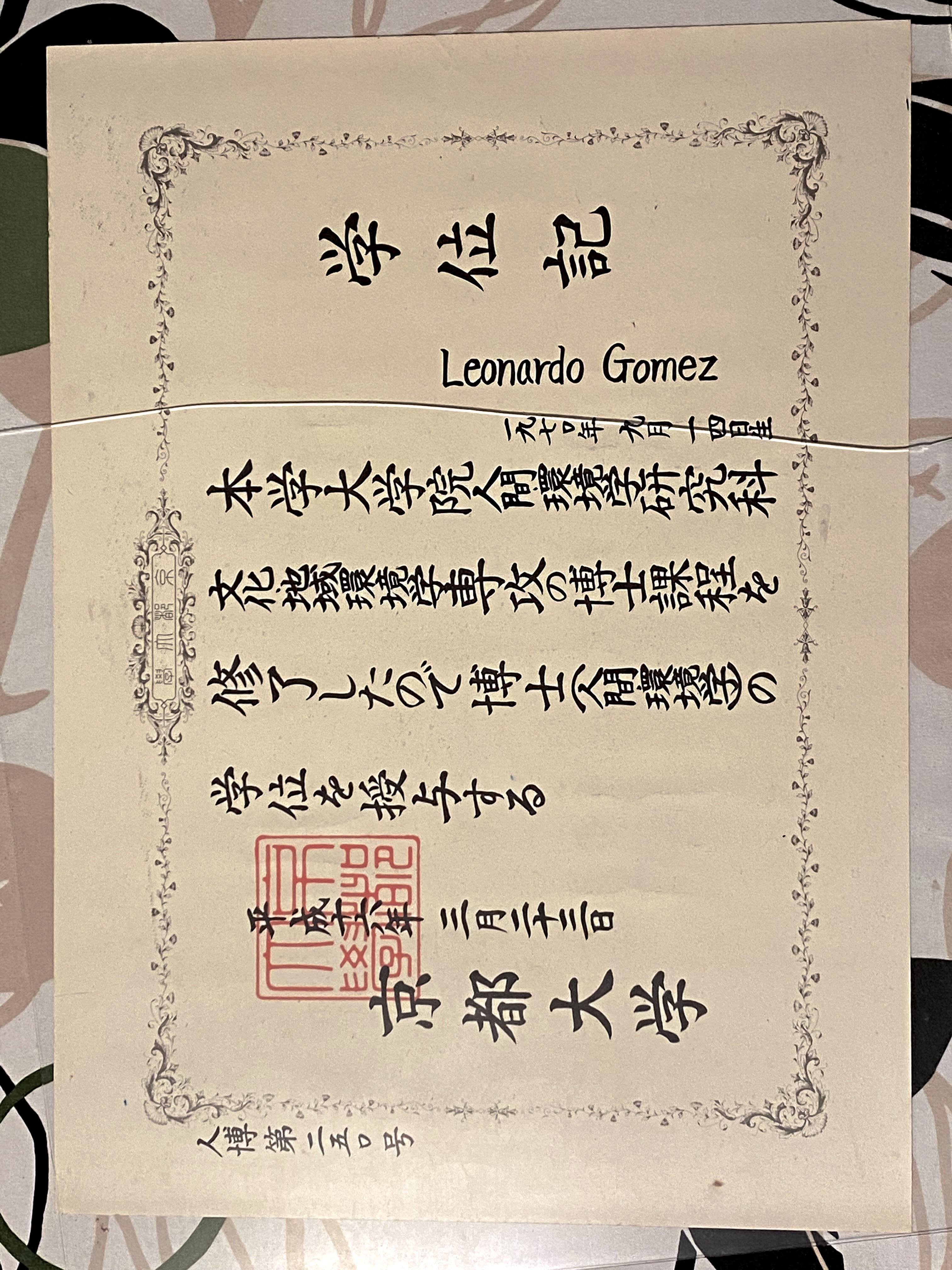 Versão em Japonês do meu Diploma de Doutorado, Kyoto University. Kyoto, 2004.