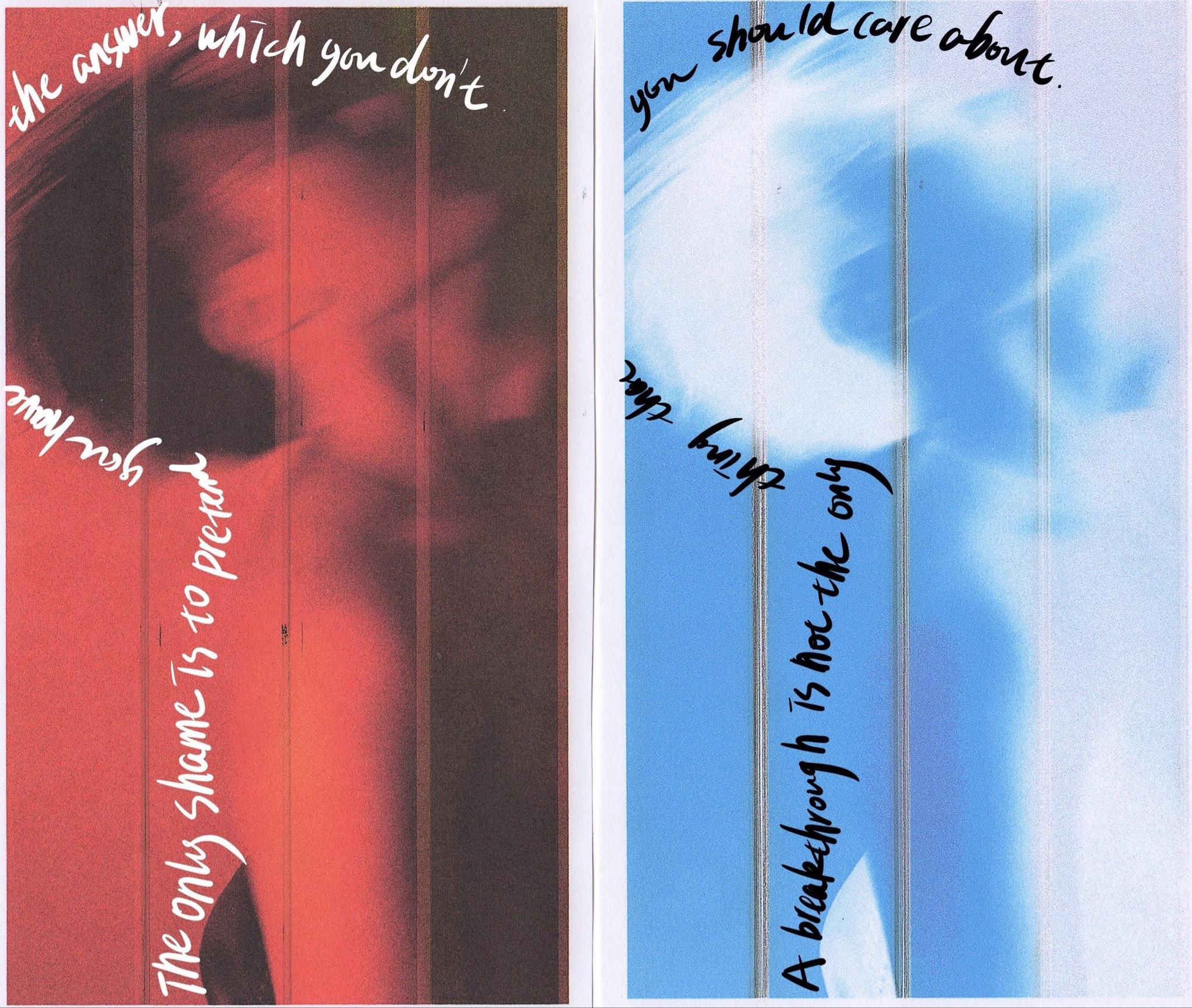 Everyportraitinthisensembleshowcasestwo identicalimagesoftheartist—apoignant representationofintrospectionandtheduality oftheself.Theseimagesaresurroundedby Mu'shandwrittenthoughts,resemblingahalo ofintrospection.