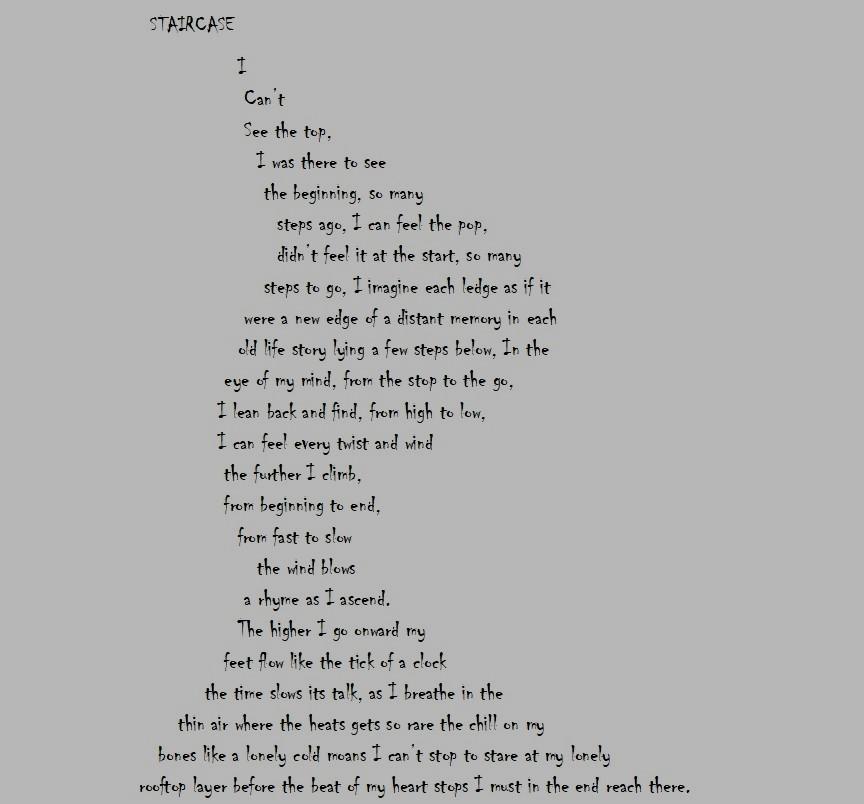 Write a poem? Where do I start? Ink from the pen, contents from the heart. draw on past experiences, the bad and the good not always clear to see, and often misunderstood a problem of yours might go over one head bellies filled with worry, anxiety needs fed bodies filled with meds, chemicals in the brain tragedy after tragedy, time and time again the body, each different, not one is the same I’ll address my indifferences and defend them in my name if I could give strength to one person, or even more things could be very different, opening that one door never doubt yourself because others do that for you you can be whatever you want. believe it, cos it’s true if you can dream it, strive to achieve it. it won’t happen overnight, but never stop believing it.>>DMcK