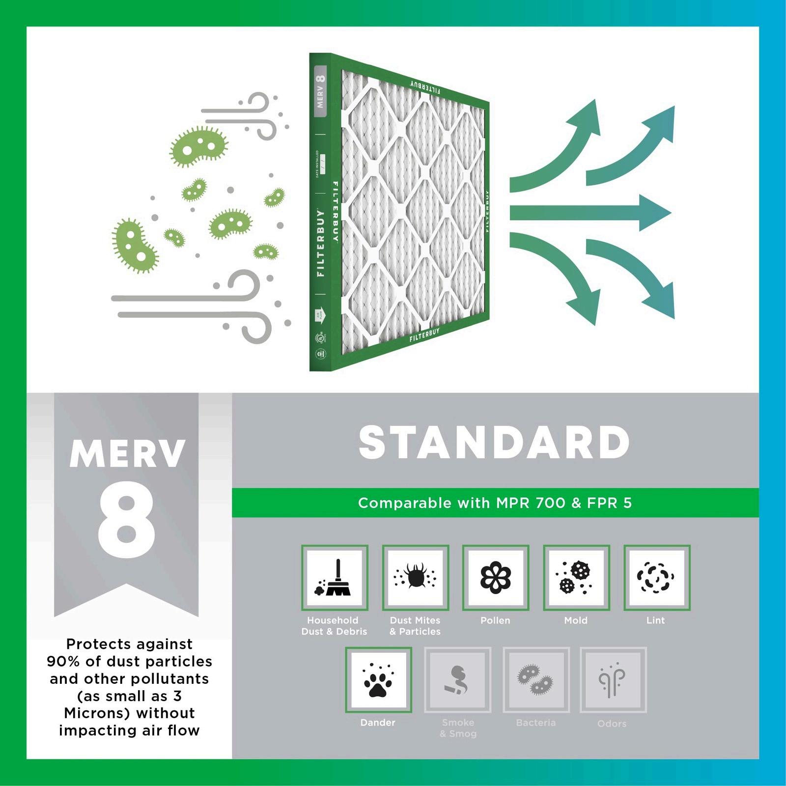 SelectMERV8forprimarilydustconcerns,MERV11for pollenanddandersensitivity,orMERV13forsmog, smoke,andbacteria.