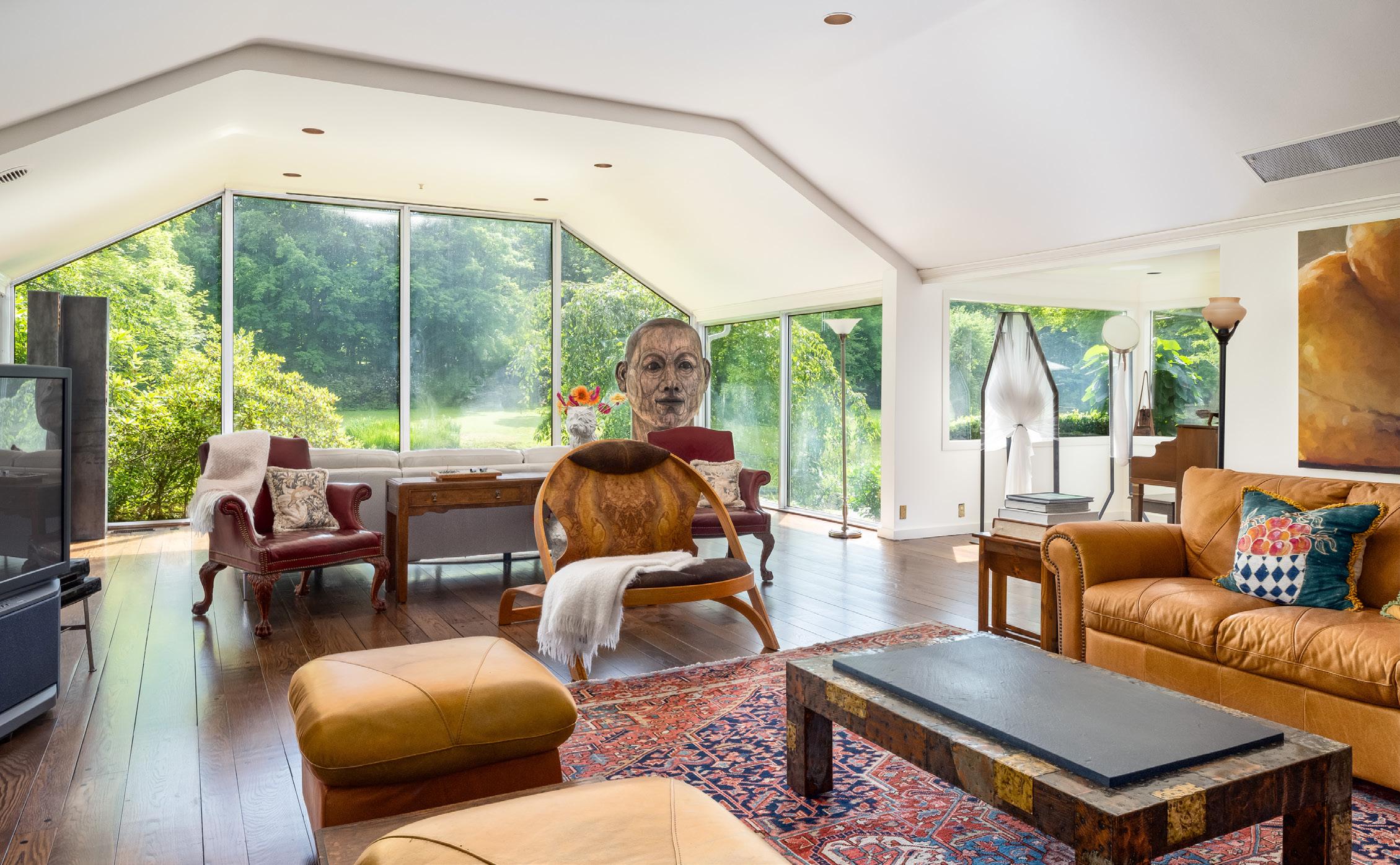 No surprise that recent owners of this picture-perfect Pound Ridge sanctuary were art collectors: besides commissioning an “Art Barn” to house their monumental works, they re-imagined the interior of their 1930s main house with high ceilings and vast windows to be more sculpture and painting-friendly. They then transformed their lush 13-acre landscape into a garden of large-scale sculptural delights.