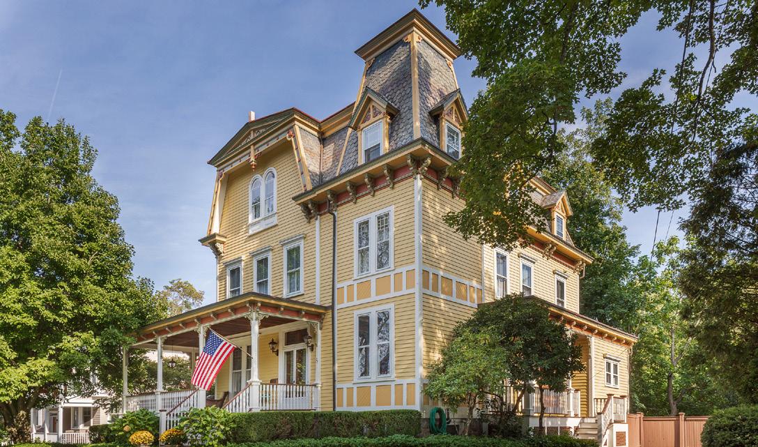 Can a house be “happy”? Check out this cheerful Victorian in Katonah, painted with a palette of brilliant yellows and reds--and tell us if it doesn’t improve your mood. The playful stained-glass windows and mansard roof---the epitome of Modern when the house was built in 1893—remain as timeless as ever. Just steps from the hip cafes and shops and the super popular Katonah Art Walks!