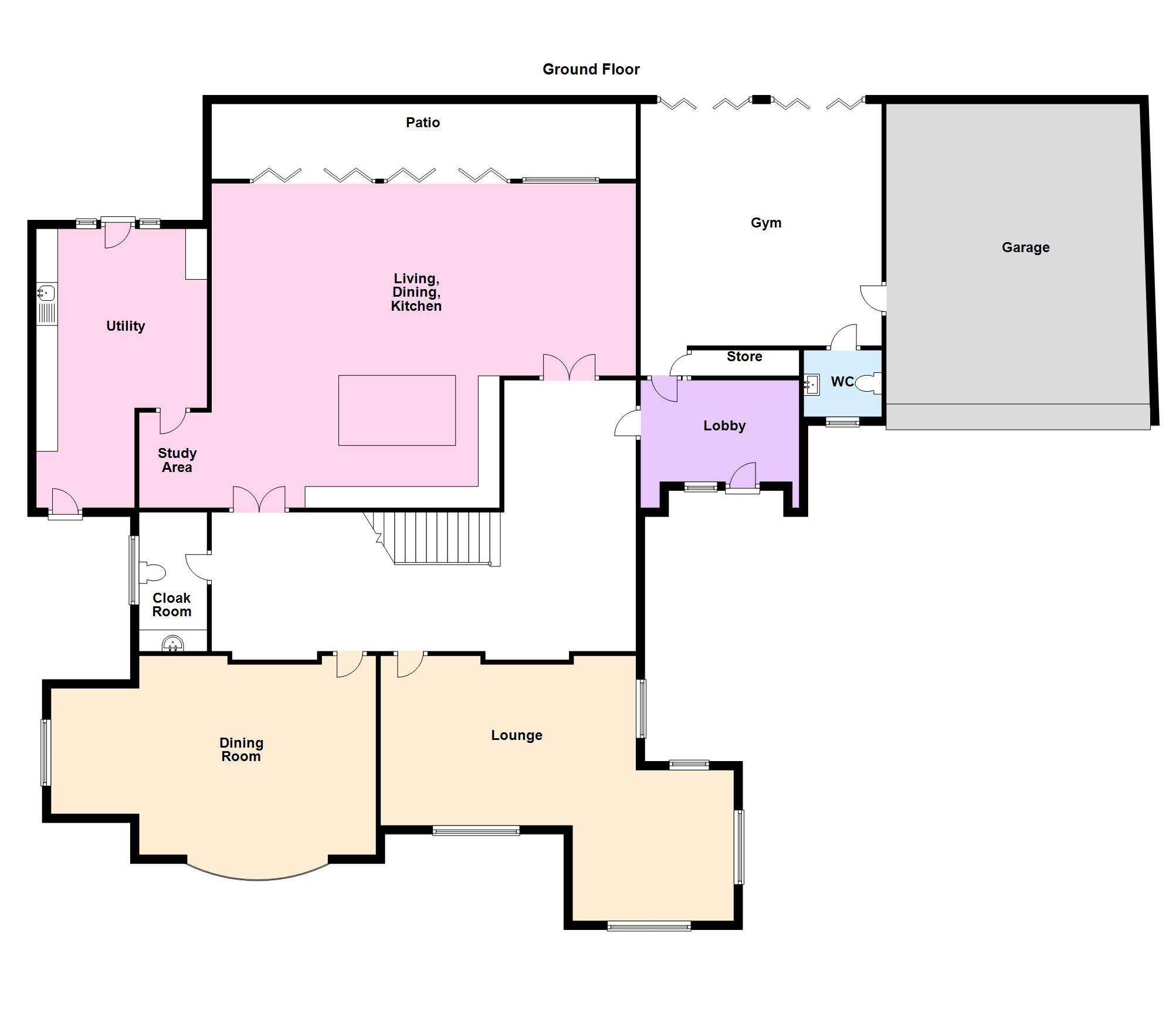 A door from the main entrance lobby leads to a spacious air conditioned gym with cloakroom, speakers and TV/Media, full length windows and sliding doors to the rear garden. Courtesy door to the garage.