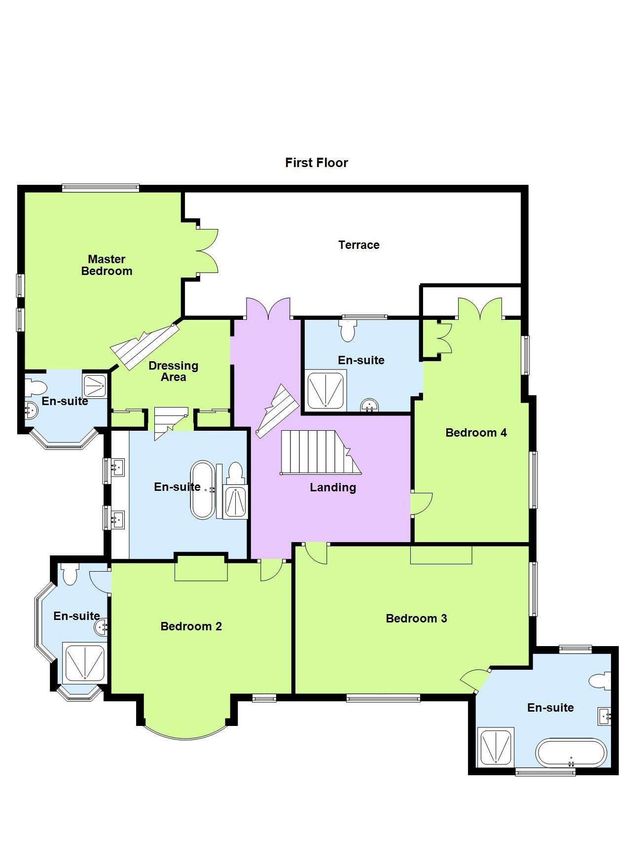 The accommodation is arranged on three levels, providing generous family living space on the ground floor including; a lounge, dining room, open plan living, dining, kitchen,and utility. On the first floor, there are four bedrooms all with en suite facilities. The master bedroom has